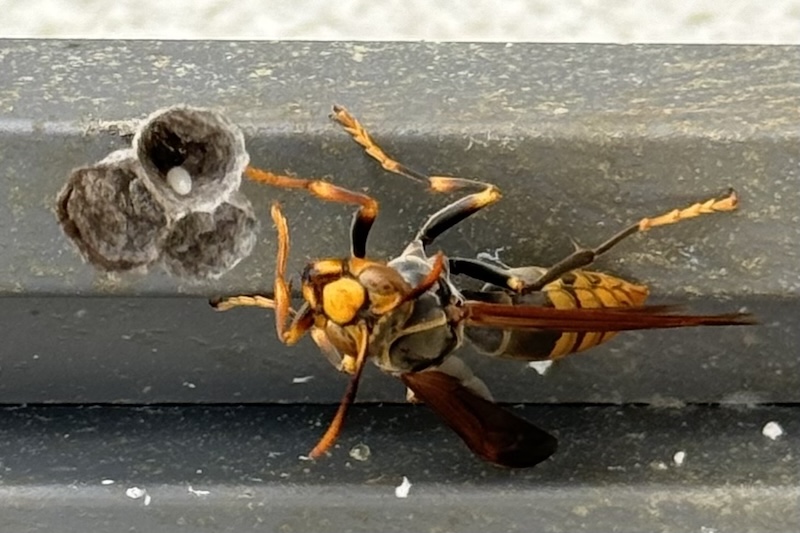 여왕벌은 일벌보다 몸집이 더 큽니다. 만약 쌍살벌의 여왕벌을 처음 보는 사람이라면, 말벌로 오해할 수도 있습니다.