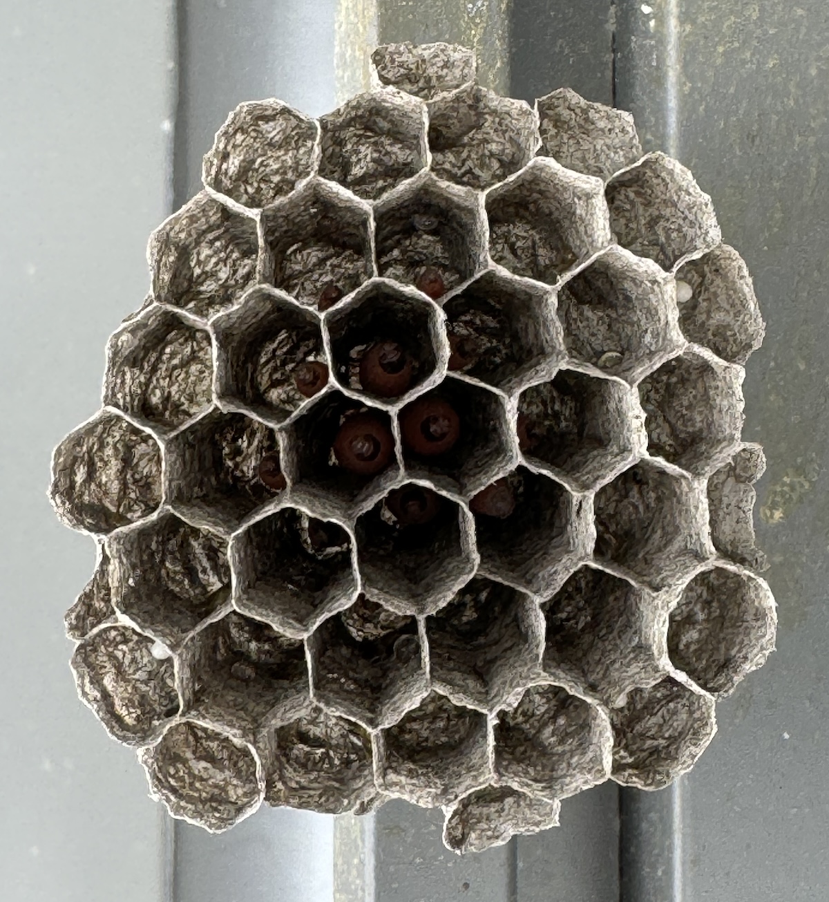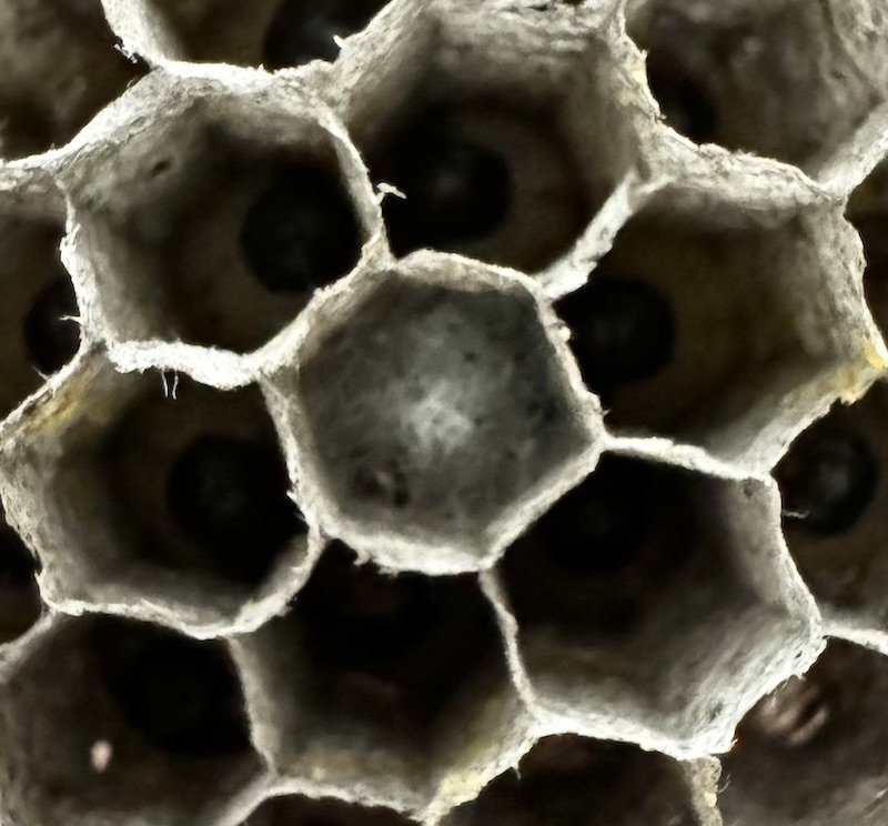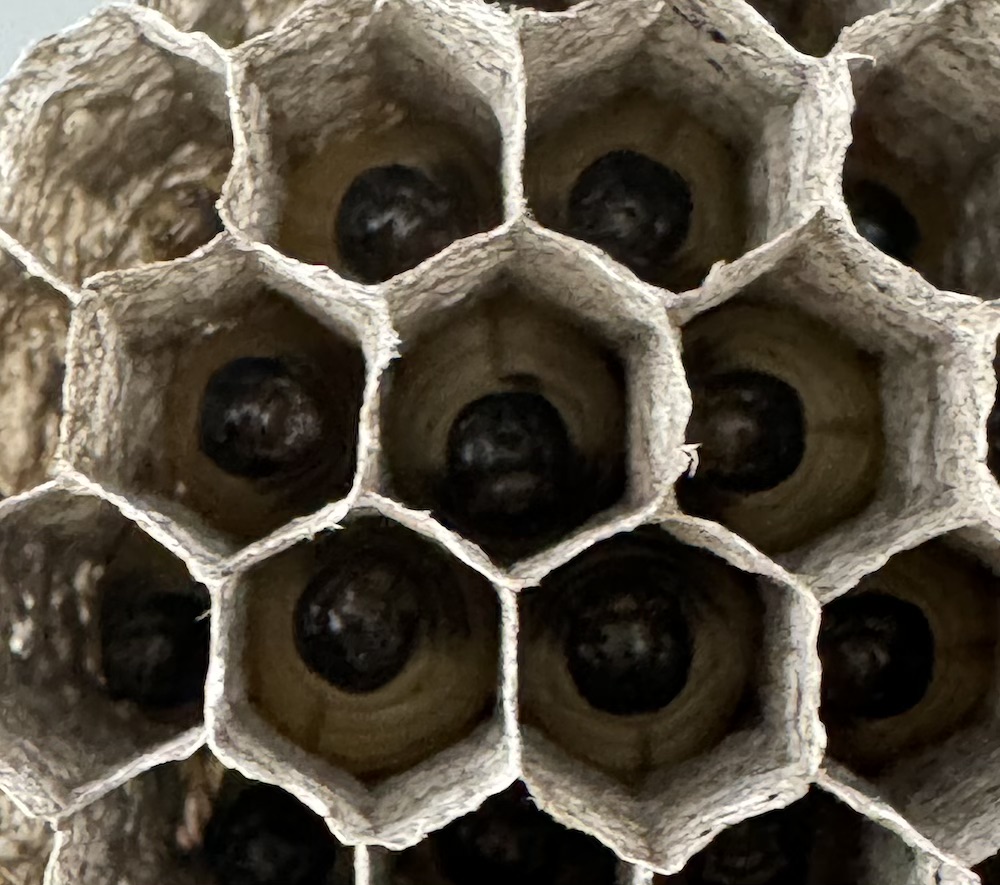 쌍살벌은 벌집을 거꾸로 짓습니다. 벌집의 입구가 지면을 향하고 있긴 한데, 걱정과는 달리 애벌레들이 지면에 떨어지지는 않습니다. 벌집은 모양은, 마치 바람에 뒤집어진 우산이 천장에 매달려 있는 모양 같습니다. 벌집의 중심부는 깊이가 깊고, 외곽으로 갈수록 얕아집니다.