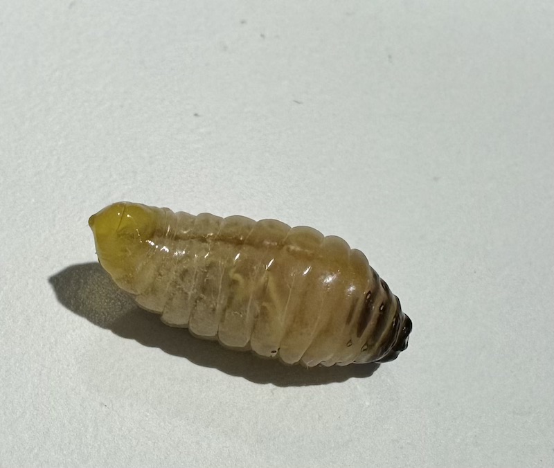 애벌레는 눈이 없고, 입만 있으며 마치 굼벵이처럼 생겼습니다.