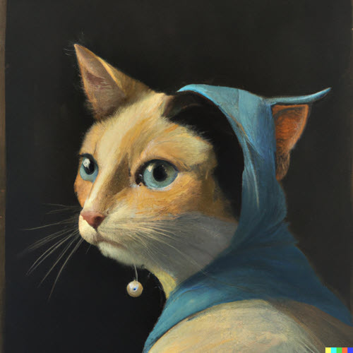 프롬프트는, "a cat with a pearl earring, by Johannes Vermeer"였다.